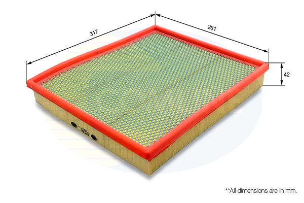 Proizvođač: COMLINE | Izvedba filtera: Uložak filtera | Dužina [mm]: 317mm | Širina [mm]: 261mm | Visina [mm]: 42mm | Oblik: pravougaoni | Težina [kg]: 0kg | Spart line kod: coeaf357 | GTIN: 5055181515336