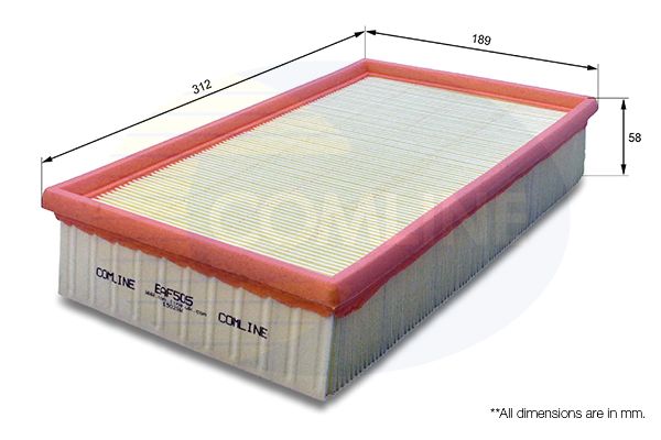 Proizvođač: COMLINE | Izvedba filtera: Uložak filtera | Dužina [mm]: 312mm | Širina [mm]: 189mm | Visina [mm]: 58mm | Oblik: pravougaoni | Težina [kg]: 0kg | Spart line kod: coeaf505 | GTIN: 5055181516753