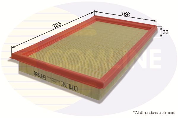 Proizvođač: COMLINE | Izvedba filtera: Uložak filtera | Dužina [mm]: 283mm | Širina [mm]: 168mm | Visina [mm]: 33mm | Oblik: pravougaoni | Spart line kod: coeaf980 | GTIN: 5055590862953