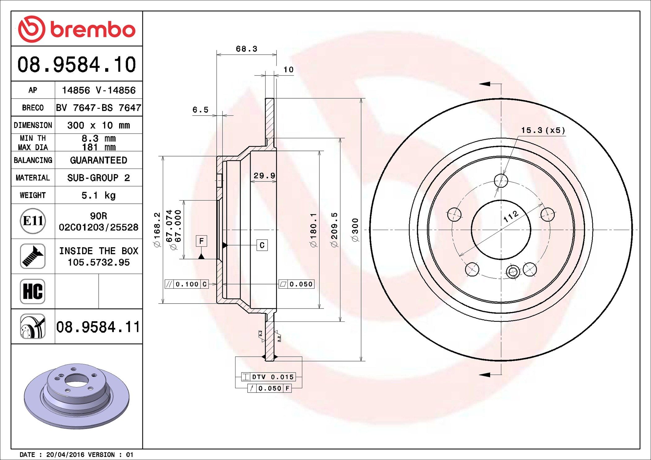 Proizvođač: BREMBO | Vrsta kočionog diska: pun | Debljina kočionog diska [mm]: 10mm | Broj otvora: 5 | Dopunski proizvod/dopunska informacija 2: sa vijcima | Visina [mm]: 66mm | Prečnik centriranja [mm]: 67mm | Spoljašnji prečnik [mm]: 300mm | Obrada: vrlo karbonizovan | Minimalna debljina [mm]: 8mm | Obrtni moment pri pokretanju [Nm]: 3Nm | Spart line kod: bb08958410 | GTIN: 8020584958414