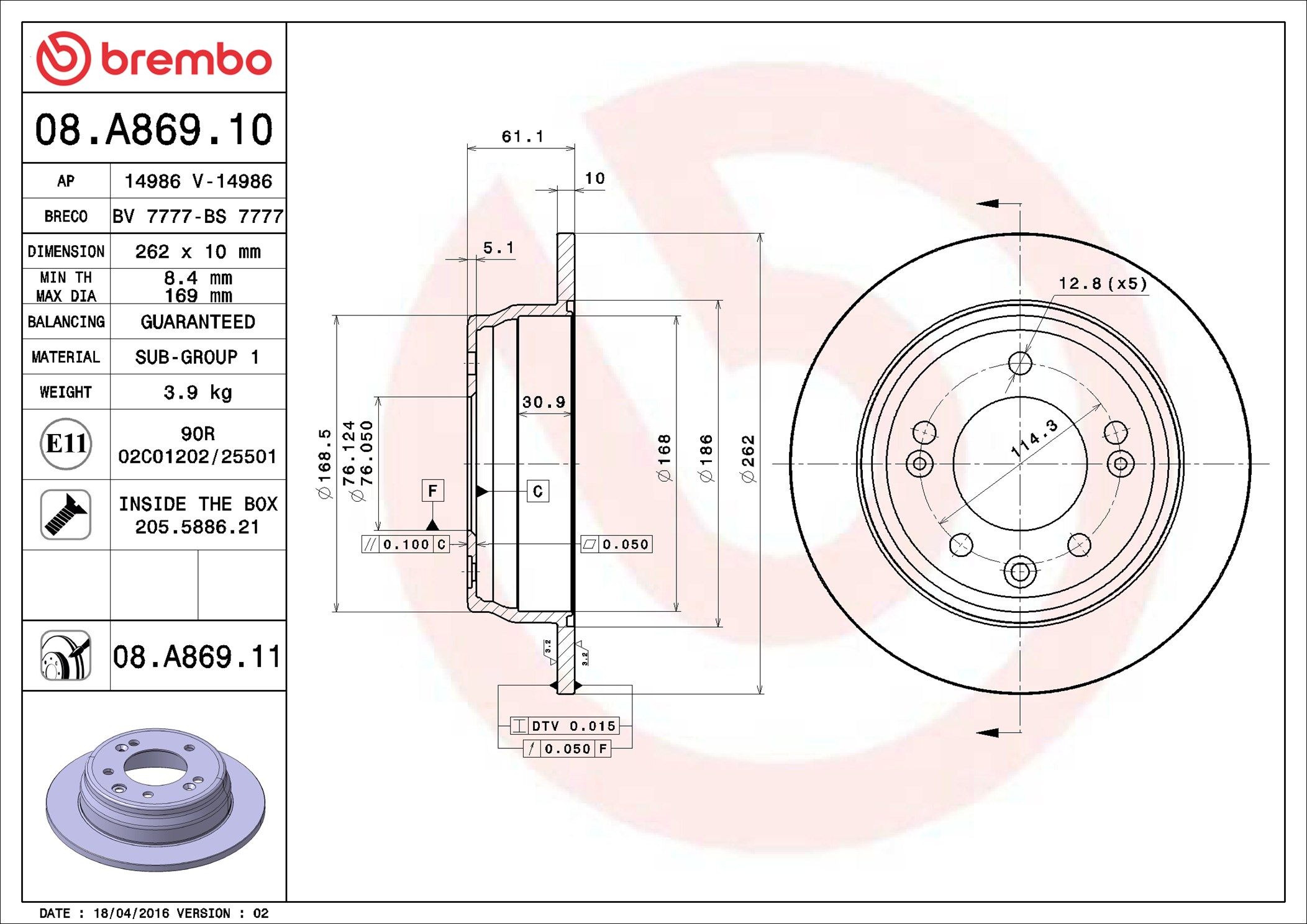 Proizvođač: BREMBO | Vrsta kočionog diska: pun | Debljina kočionog diska [mm]: 10mm | Broj otvora: 5 | Dopunski proizvod/dopunska informacija 2: sa vijcima | Visina [mm]: 61mm | Prečnik centriranja [mm]: 76mm | Spoljašnji prečnik [mm]: 262mm | Površina: prevučeno slojem | Minimalna debljina [mm]: 8mm | Obrtni moment pri pokretanju [Nm]: 4Nm | Spart line kod: bb08a86911 | GTIN: 8020584210420