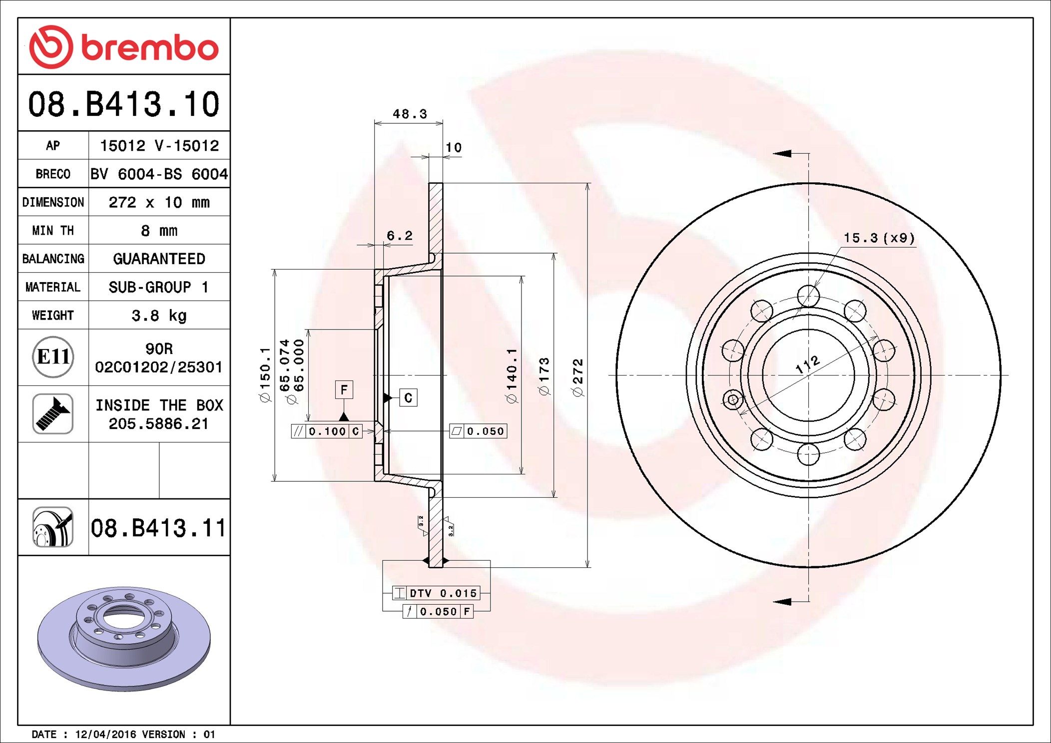 Proizvođač: BREMBO | Vrsta kočionog diska: pun | Debljina kočionog diska [mm]: 10mm | Broj otvora: 5 | Dopunski proizvod/dopunska informacija 2: sa vijcima | Visina [mm]: 48mm | Prečnik centriranja [mm]: 65mm | Spoljašnji prečnik [mm]: 272mm | Površina: prevučeno slojem | Minimalna debljina [mm]: 8mm | Obrtni moment pri pokretanju [Nm]: 120Nm | Spart line kod: bb08b41311 | GTIN: 8020584031483