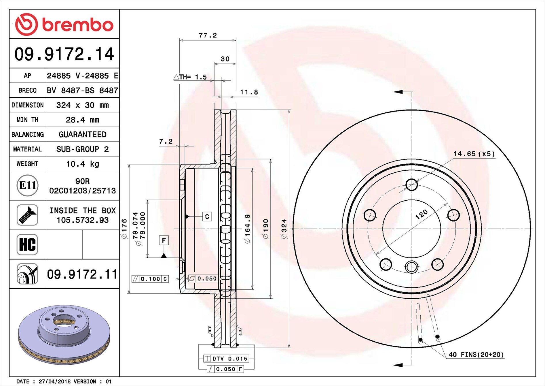 Proizvođač: BREMBO | Vrsta kočionog diska: sa unutrašnjom ventilacijom | Debljina kočionog diska [mm]: 30mm | Broj otvora: 5 | Dopunski proizvod/dopunska informacija 2: sa vijcima | Visina [mm]: 77mm | Prečnik centriranja [mm]: 79mm | Spoljašnji prečnik [mm]: 324mm | Obrada: vrlo karbonizovan | Minimalna debljina [mm]: 28mm | Obrtni moment pri pokretanju [Nm]: 4Nm | Spart line kod: bb09917214 | GTIN: 8020584013366