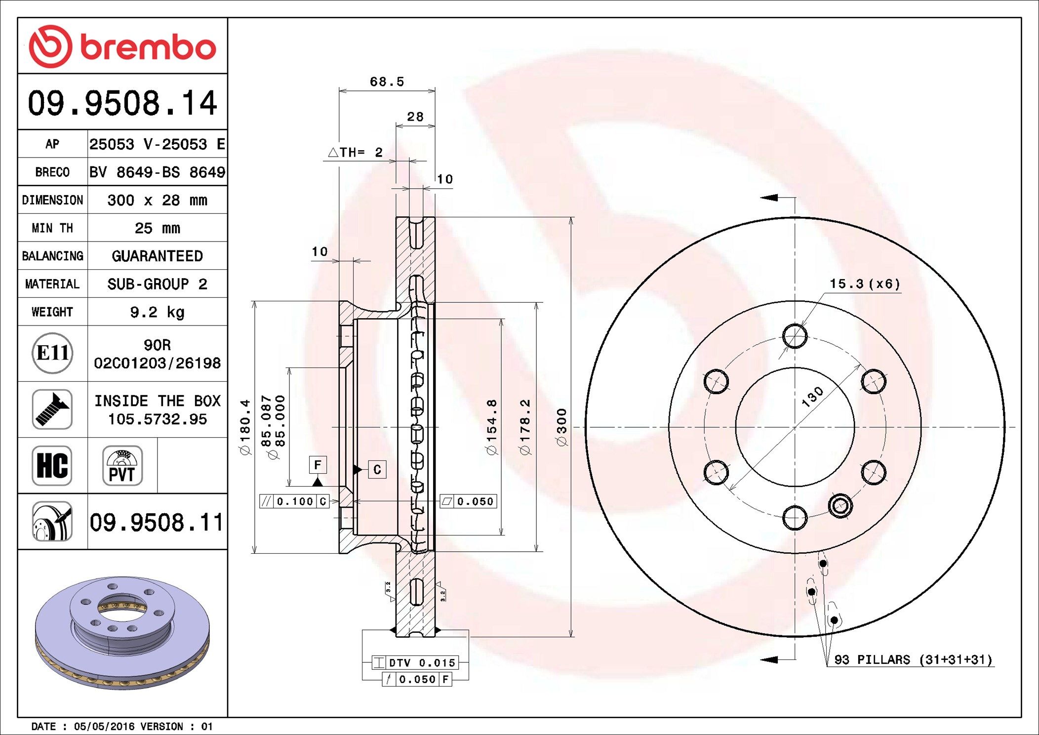 Proizvođač: BREMBO | Vrsta kočionog diska: sa unutrašnjom ventilacijom | Debljina kočionog diska [mm]: 28mm | Broj otvora: 6 | Dopunski proizvod/dopunska informacija 2: sa vijcima | Visina [mm]: 69mm | Prečnik centriranja [mm]: 85mm | Spoljašnji prečnik [mm]: 300mm | Obrada: vrlo karbonizovan | Minimalna debljina [mm]: 25mm | Obrtni moment pri pokretanju [Nm]: 175Nm | Spart line kod: bb09950814 | GTIN: 8020584950814