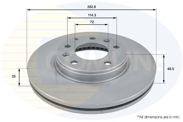 Proizvođač: COMLINE | Vrsta kočionog diska: sa unutrašnjom ventilacijom | Spoljašnji prečnik [mm]: 283mm | Debljina kočionog diska [mm]: 25mm | Visina [mm]: 48mm | Ø otvora za šrafove [mm]: 5mm | Prečnik centriranja [mm]: 114mm | Broj otvora: 3 | Površina: 72 | Minimalna debljina [mm]: 5mm | Broj otvora: prevučeno slojem | Spart line kod: coadc0445v | GTIN: 5055181528756