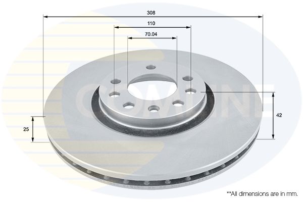 Proizvođač: COMLINE | Vrsta kočionog diska: sa unutrašnjom ventilacijom | Spoljašnji prečnik [mm]: 308mm | Debljina kočionog diska [mm]: 25mm | Visina [mm]: 42mm | Ø otvora za šrafove [mm]: 110mm | Prečnik centriranja [mm]: 70mm | Broj otvora: 5 | Površina: prevučeno slojem | Minimalna debljina [mm]: 22mm | Broj otvora: 3 | Spart line kod: coadc1124v | GTIN: 5055181531763