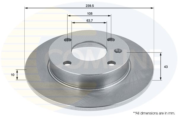Proizvođač: COMLINE | Vrsta kočionog diska: pun | Spoljašnji prečnik [mm]: 240mm | Debljina kočionog diska [mm]: 10mm | Visina [mm]: 43mm | Ø otvora za šrafove [mm]: 108mm | Prečnik centriranja [mm]: 63mm | Broj otvora: 7 | Minimalna debljina [mm]: 4mm | Broj otvora: 8 | Spart line kod: coadc1203 | GTIN: 5055181530384