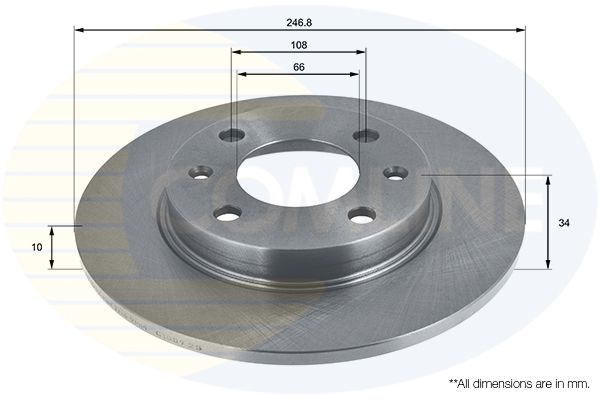 Proizvođač: COMLINE | Vrsta kočionog diska: pun | Spoljašnji prečnik [mm]: 247mm | Debljina kočionog diska [mm]: 10mm | Visina [mm]: 34mm | Ø otvora za šrafove [mm]: 108mm | Prečnik centriranja [mm]: 66mm | Broj otvora: 4 | Površina: prevučeno slojem | Minimalna debljina [mm]: 8mm | Broj otvora: 2 | Spart line kod: coadc1502 | GTIN: 5055181530858