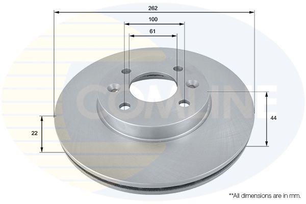 Proizvođač: COMLINE | Vrsta kočionog diska: sa unutrašnjom ventilacijom | Spoljašnji prečnik [mm]: 262mm | Debljina kočionog diska [mm]: 22mm | Visina [mm]: 44mm | Ø otvora za šrafove [mm]: 100mm | Prečnik centriranja [mm]: 61mm | Broj otvora: 4 | Minimalna debljina [mm]: 19mm | Broj otvora: 8 | Spart line kod: coadc1510v | GTIN: 5055181530933