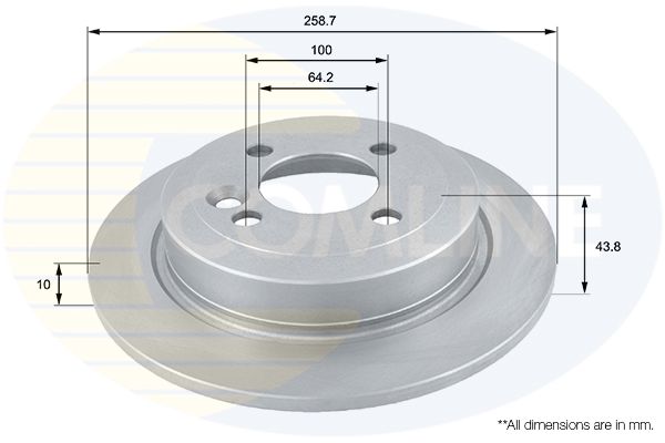 Proizvođač: COMLINE | Vrsta kočionog diska: pun | Spoljašnji prečnik [mm]: 259mm | Debljina kočionog diska [mm]: 10mm | Visina [mm]: 43mm | Ø otvora za šrafove [mm]: 8mm | Prečnik otvora vijka točka [mm]: 100mm | Prečnik centriranja [mm]: 14mm | Broj otvora: 7 | Površina: 64 | Minimalna debljina [mm]: 2mm | Broj otvora: 4 | Spart line kod: coadc1714 | GTIN: 5055181532296