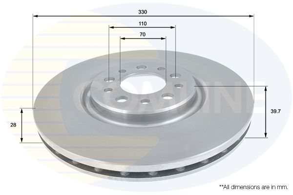 Proizvođač: COMLINE | Vrsta kočionog diska: sa unutrašnjom ventilacijom | Spoljašnji prečnik [mm]: 330mm | Debljina kočionog diska [mm]: 28mm | Visina [mm]: 39mm | Ø otvora za šrafove [mm]: 7mm | Prečnik centriranja [mm]: 110mm | Broj otvora: 70 | Površina: 5 | Minimalna debljina [mm]: prevučeno slojemmm | Broj otvora: 26 | Spart line kod: coadc1827v | GTIN: 5055181547078
