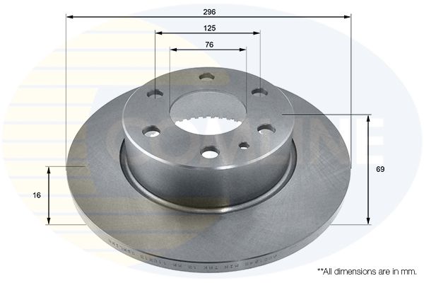 Proizvođač: COMLINE | Vrsta kočionog diska: pun | Spoljašnji prečnik [mm]: 296mm | Debljina kočionog diska [mm]: 16mm | Visina [mm]: 69mm | Ø otvora za šrafove [mm]: 125mm | Prečnik centriranja [mm]: 76mm | Broj otvora: 6 | Površina: prevučeno slojem | Minimalna debljina [mm]: 13mm | Broj otvora: 1 | Spart line kod: coadc1842 | GTIN: 5055339182052