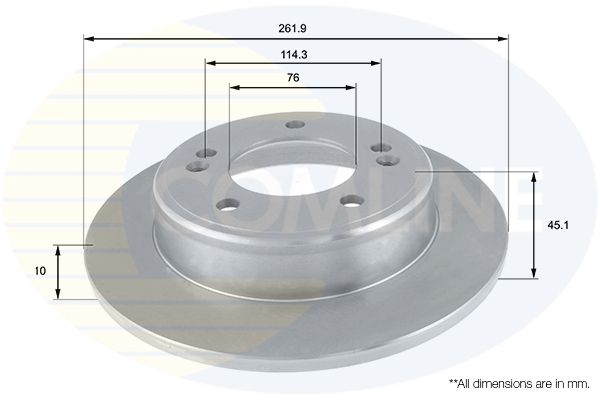 Proizvođač: COMLINE | Vrsta kočionog diska: pun | Spoljašnji prečnik [mm]: 262mm | Debljina kočionog diska [mm]: 10mm | Visina [mm]: 45mm | Ø otvora za šrafove [mm]: 1mm | Prečnik centriranja [mm]: 114mm | Broj otvora: 3 | Površina: 76 | Minimalna debljina [mm]: 5mm | Broj otvora: prevučeno slojem | Spart line kod: coadc2415 | GTIN: 5055590820786