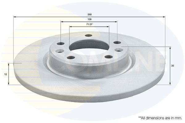 Proizvođač: COMLINE | Vrsta kočionog diska: pun | Spoljašnji prečnik [mm]: 268mm | Debljina kočionog diska [mm]: 12mm | Visina [mm]: 35mm | Ø otvora za šrafove [mm]: 108mm | Prečnik centriranja [mm]: 71mm | Broj otvora: 1 | Površina: 5 | Minimalna debljina [mm]: prevučeno slojemmm | Broj otvora: 10 | Spart line kod: coadc2723 | GTIN: 5055590840685