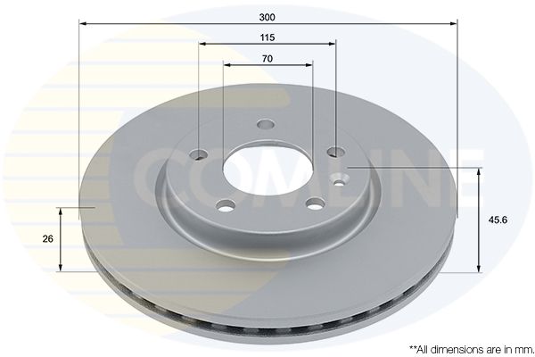 Proizvođač: COMLINE | Vrsta kočionog diska: sa unutrašnjom ventilacijom | Spoljašnji prečnik [mm]: 300mm | Debljina kočionog diska [mm]: 26mm | Visina [mm]: 45mm | Ø otvora za šrafove [mm]: 6mm | Prečnik centriranja [mm]: 115mm | Broj otvora: 70 | Površina: 5 | Minimalna debljina [mm]: prevučeno slojemmm | Broj otvora: 23 | Spart line kod: coadc2967v | GTIN: 5055590873300