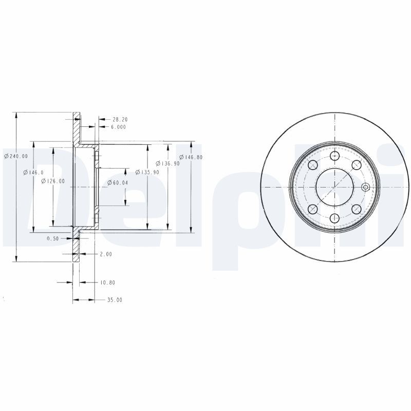Proizvođač: DELPHI | Vrsta kočionog diska: pun | Broj otvora: 4 | Kontrolna oznaka: E1 90R-02C0957/2593 | Površina: premazana uljem | Spoljašnji prečnik [mm]: 240mm | Debljina kočionog diska [mm]: 11mm | Minimalna debljina [mm]: 9mm | Prečnik centriranja [mm]: 60mm | Visina [mm]: 41mm | Spart line kod: dlbg3567 | GTIN: 5012759174210