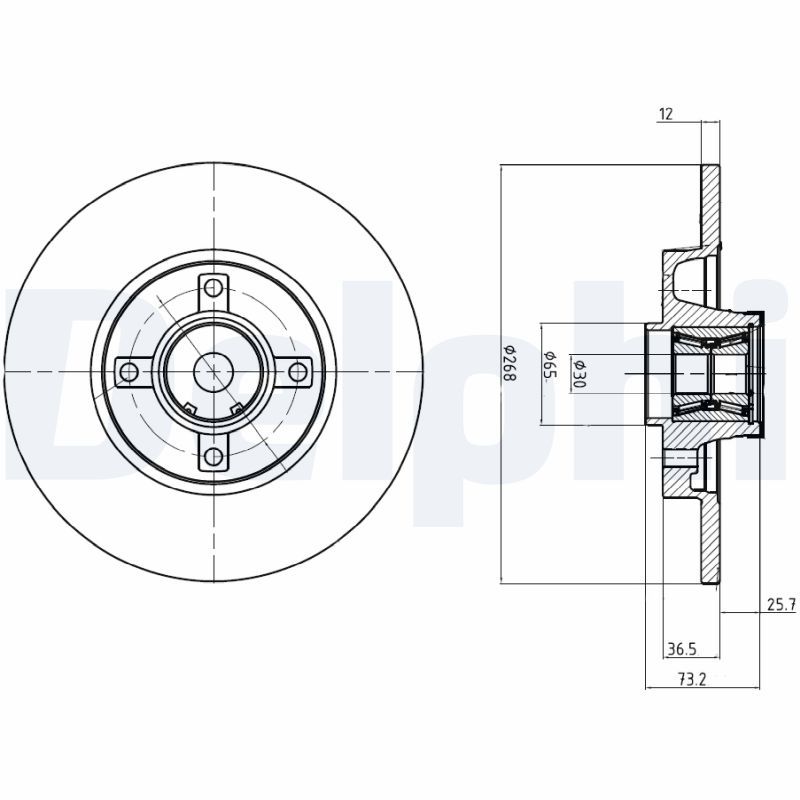 Proizvođač: DELPHI | Vrsta kočionog diska: pun | Broj otvora: 4 | Kontrolna oznaka: E1 90R-02C0543/1517 | Dopunski proizvod/dopunska informacija 2: sa ležajem točka | Dopunski proizvod/dopunska informacija 2: sa ABS-senzorom u obliku prstena | Površina: prevučeno slojem | Spoljašnji prečnik [mm]: 268mm | Debljina kočionog diska [mm]: 12mm | Minimalna debljina [mm]: 10mm | Prečnik centriranja [mm]: 30mm | Visina [mm]: 73mm | Spart line kod: dlbg9053rsc | GTIN: 5012759533390