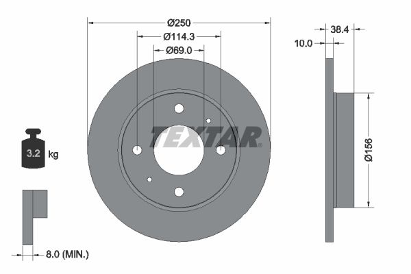 Proizvođač: TEXTAR | Vrsta kočionog diska: pun | Spoljašnji prečnik [mm]: 250mm | Debljina kočionog diska [mm]: 10mm | Visina [mm]: 38mm | Minimalna debljina [mm]: 4mm | Površina: 8 | Unutrašnji prečnik [mm]: prevučeno slojemmm | Ø otvora za šrafove [mm]: 146mm | Prečnik centriranja [mm]: 5mm | Šema otvora/broj rupa: 114 | Prečnik otvora vijka točka [mm]: 3mm | Dopunski proizvod/dopunska informacija 2: 69 | Dopunski proizvod/dopunska informacija 2: 04/06 | Dopunski proizvod/dopunska informacija 2: 12 | Dužina pakovanja [cm]: 8cm | Širina pakovanja [cm]: bez glavčine točkacm | Visina pakovanja [cm]: bez ležaja točkacm | Težina [kg]: bez osovinice za pričvršćenje točkakg | Spart line kod: tx92134903 | GTIN: 4019722302565