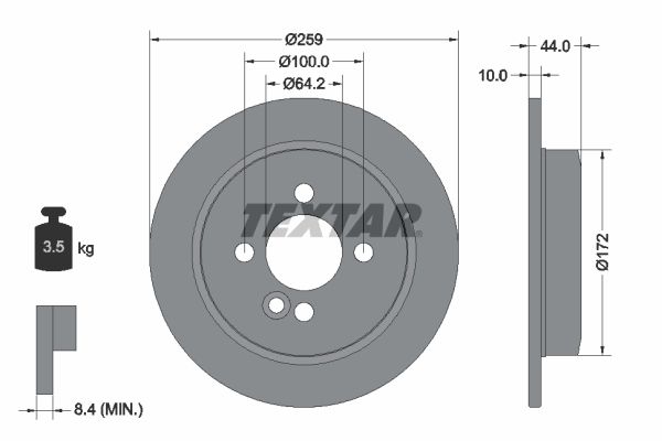 Proizvođač: TEXTAR | Vrsta kočionog diska: pun | Spoljašnji prečnik [mm]: 259mm | Debljina kočionog diska [mm]: 10mm | Visina [mm]: 44mm | Minimalna debljina [mm]: 8mm | Površina: 4 | Unutrašnji prečnik [mm]: prevučeno slojemmm | Ø otvora za šrafove [mm]: 162mm | Prečnik centriranja [mm]: 7mm | Šema otvora/broj rupa: 100 | Prečnik otvora vijka točka [mm]: 64mm | Dopunski proizvod/dopunska informacija 2: 2 | Dopunski proizvod/dopunska informacija 2: 04/05 | Dopunski proizvod/dopunska informacija 2: 16 | Dužina pakovanja [cm]: 2cm | Širina pakovanja [cm]: bez glavčine točkacm | Visina pakovanja [cm]: bez ležaja točkacm | Težina [kg]: bez osovinice za pričvršćenje točkakg | Spart line kod: tx92175003 | GTIN: 4019722378294