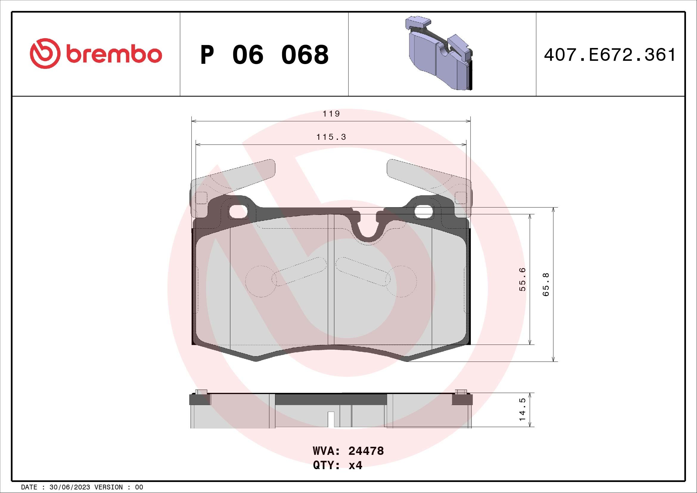 Proizvođač: BREMBO | Širina [mm]: 121mm | Debljina [mm]: 15mm | Visina [mm]: 76mm | Indikator za upozorenje na habanje: pripremljeno za indikator za upozorenje na habanje | Dopunski proizvod/dopunska informacija: bez pribora | Kočioni sistem: Brembo | Dopunski proizvod/dopunska informacija 2: sa anti-deformacionim limom | vezani za smer kretanja: | WVA-broj: 24478 | Spart line kod: bbp06068 | GTIN: 8020584090329