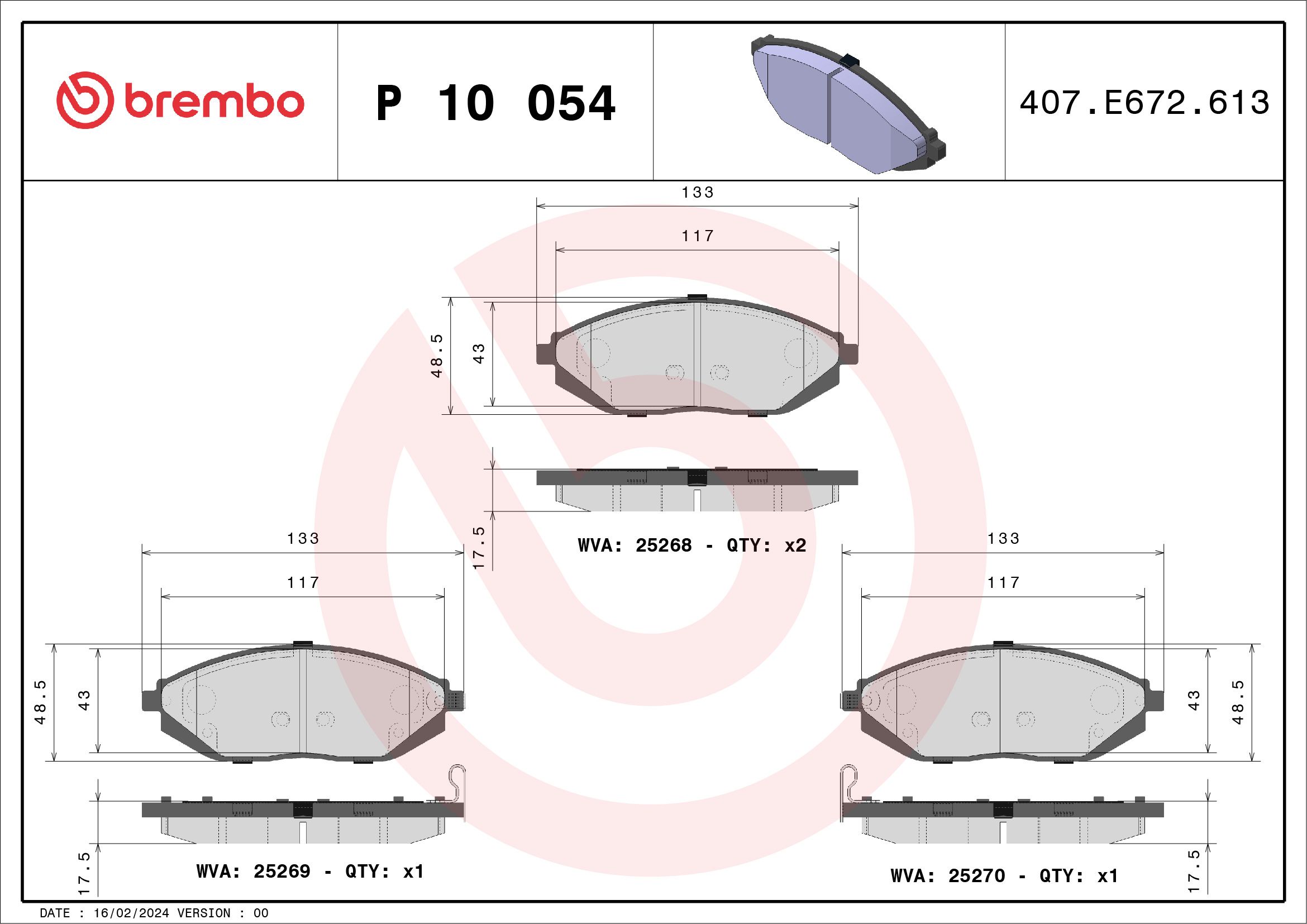 Proizvođač: BREMBO | Širina [mm]: 133mm | Debljina [mm]: 18mm | Visina [mm]: 49mm | Indikator za upozorenje na habanje: sa zvučnim upozorenjem za habanje | Dopunski proizvod/dopunska informacija: bez pribora | Kočioni sistem: Akebono | Dopunski proizvod/dopunska informacija 2: sa anti-deformacionim limom | Broj indikatora istrošenosti [po osovini]: 2po osovini | WVA-broj: 25268 | WVA-broj: 25269 | WVA-broj: 25270 | Spart line kod: bbp10054 | GTIN: 8020584102848