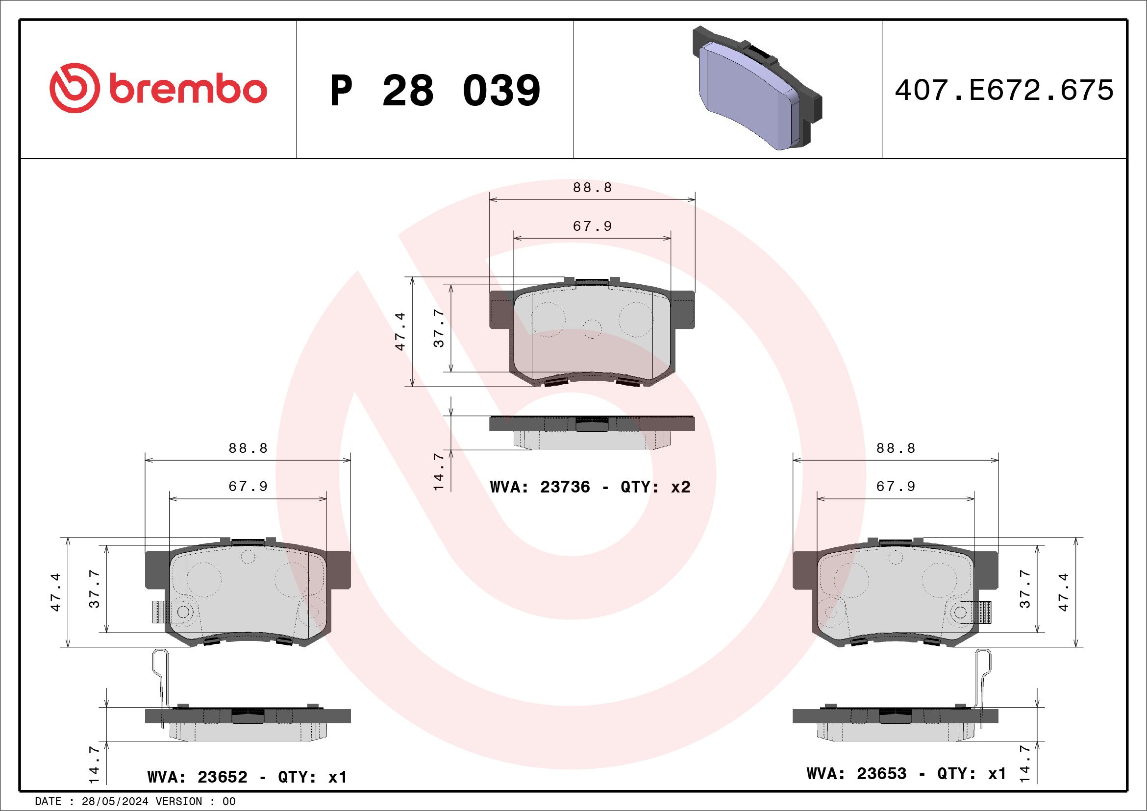 Proizvođač: BREMBO | Širina [mm]: 89mm | Debljina [mm]: 15mm | Visina [mm]: 48mm | Indikator za upozorenje na habanje: sa zvučnim upozorenjem za habanje | Dopunski proizvod/dopunska informacija: bez pribora | Kočioni sistem: Nissin | Dopunski proizvod/dopunska informacija 2: sa anti-deformacionim limom | Broj indikatora istrošenosti [po osovini]: 2po osovini | WVA-broj: 23652 | WVA-broj: 23653 | WVA-broj: 23736 | Spart line kod: bbp28039 | GTIN: 8020584059753
