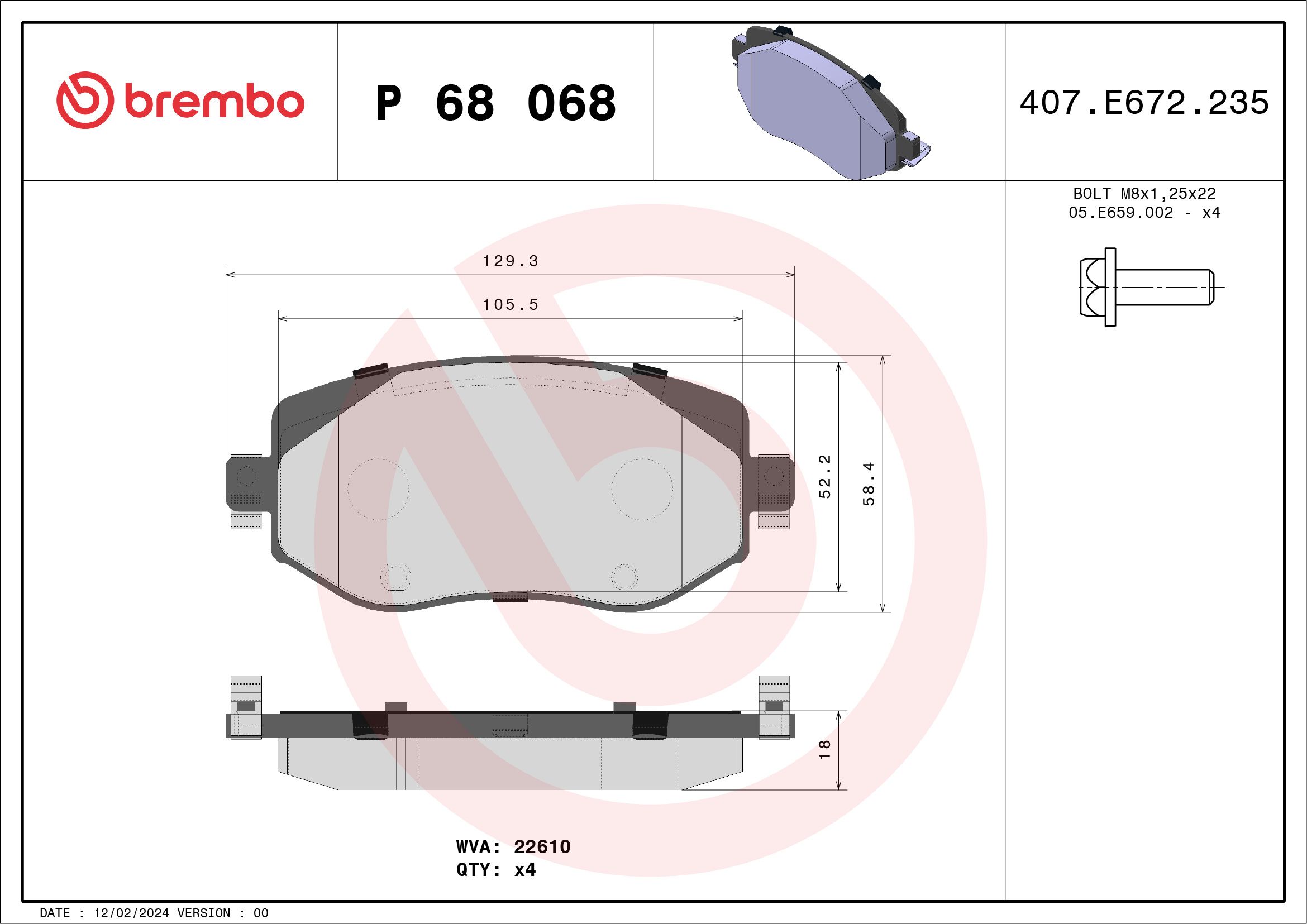 Proizvođač: BREMBO | Širina [mm]: 129mm | Debljina [mm]: 18mm | Visina [mm]: 58mm | Indikator za upozorenje na habanje: bez indikatora za upozorenje na habanje | Dopunski proizvod/dopunska informacija: sa priborom | Kočioni sistem: TRW | Dopunski proizvod/dopunska informacija 2: sa vijcima za kočione čeljusti | Dopunski proizvod/dopunska informacija 2: sa anti-deformacionim limom | WVA-broj: 22610 | Spart line kod: bbp68068 | GTIN: 8020584087039