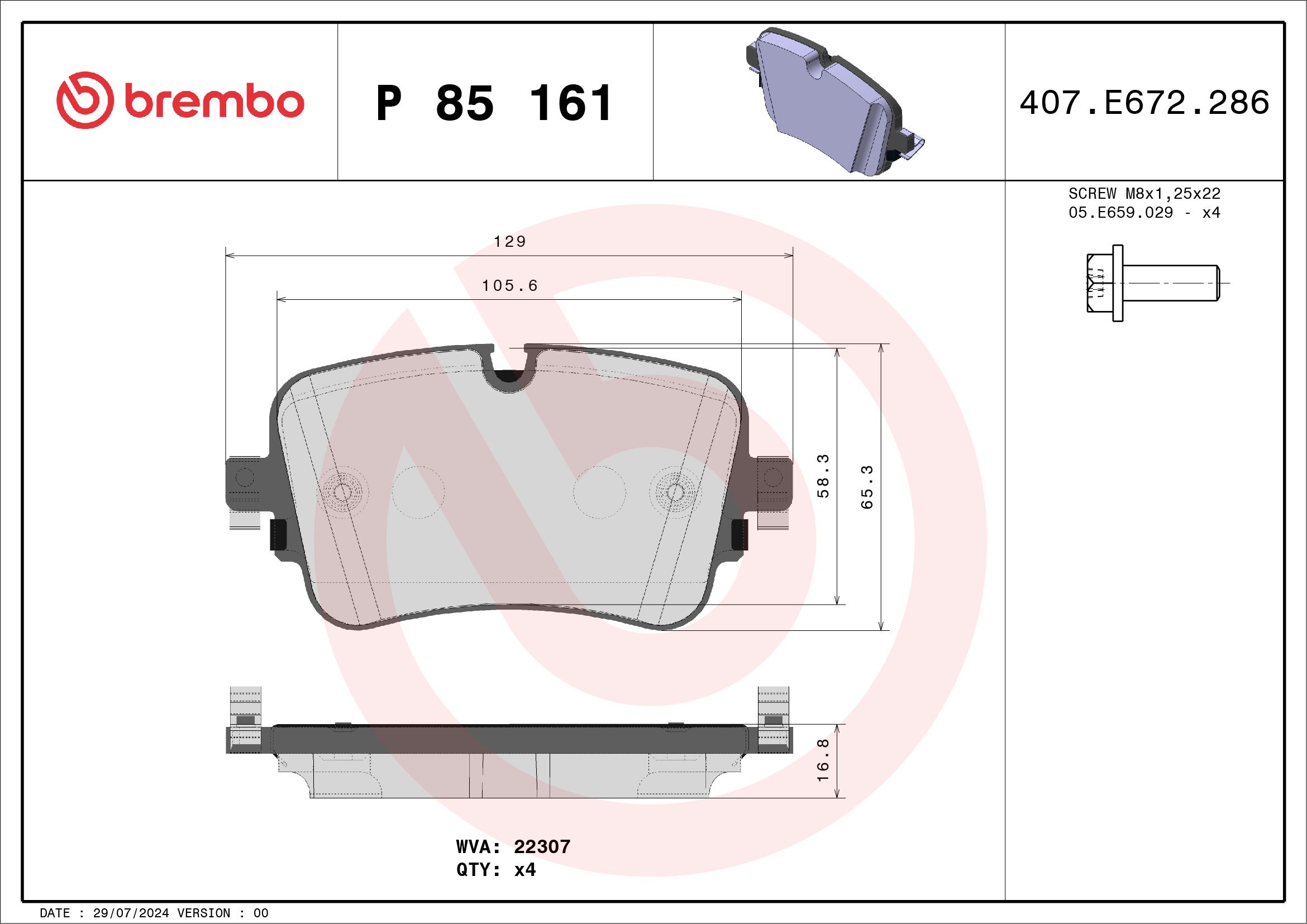 Proizvođač: BREMBO | Širina [mm]: 129mm | Debljina [mm]: 17mm | Visina [mm]: 65mm | Indikator za upozorenje na habanje: bez indikatora za upozorenje na habanje | Dopunski proizvod/dopunska informacija: sa priborom | Kočioni sistem: TRW | Dopunski proizvod/dopunska informacija 2: sa vijcima za kočione čeljusti | Dopunski proizvod/dopunska informacija 2: sa anti-deformacionim limom | WVA-broj: 22307 | Spart line kod: bbp85161 | GTIN: 8020584084793