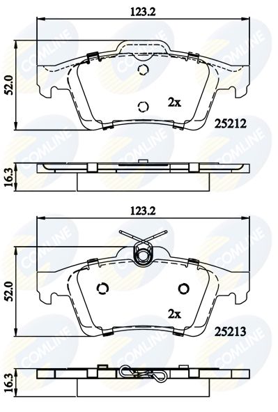 Proizvođač: COMLINE | Kočioni sistem: Teves | Kočione pločice: bez zakošene ivice | Širina [mm]: 52mm | Debljina [mm]: 16mm | WVA-broj: 3 | WVA-broj: 25212 | Indikator za upozorenje na habanje: 25213 | Dužina [mm]: bez indikatora za upozorenje na habanjemm | Spart line kod: cocbp01629 | GTIN: 5055339182939