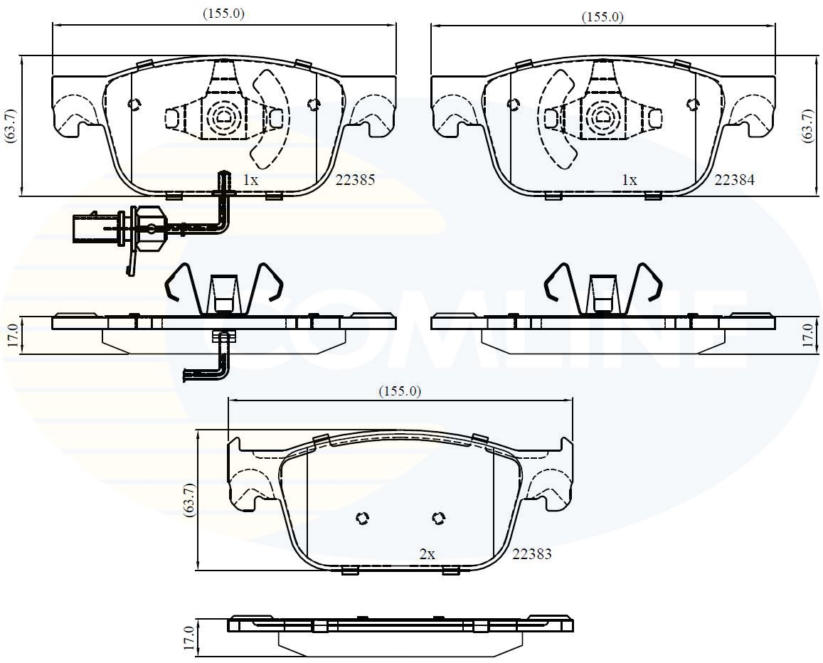 Proizvođač: COMLINE | Kočioni sistem: ATE | Broj indikatora istrošenosti [po osovini]: 1po osovini | Širina [mm]: 63mm | Debljina [mm]: 7mm | WVA-broj: 17 | WVA-broj: 22383 | WVA-broj: 22384 | Indikator za upozorenje na habanje: 22385 | Dužina [mm]: sa ugrađenim indikatorom za upozorenje na habanjemm | Spart line kod: cocbp12352 | GTIN: 5055590872280