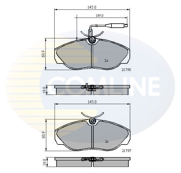 Proizvođač: COMLINE | Kočioni sistem: TRW | Kočione pločice: sa zakošenom ivicom | Širina [mm]: 60mm | Debljina [mm]: 9mm | WVA-broj: 19 | WVA-broj: 21797 | Indikator za upozorenje na habanje: 21798 | Dužina [mm]: uklj. indikator za upozorenje na habanjemm | Dužina kabla [mm]: 145mm | Spart line kod: cocbp2219 | GTIN: 5055339178277