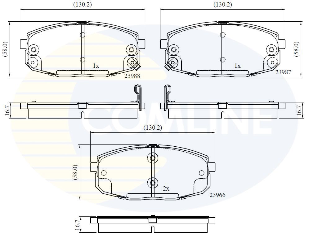 Proizvođač: COMLINE | Kočioni sistem: Mando | Kočione pločice: bez zakošene ivice | Širina [mm]: 58mm | Debljina [mm]: 16mm | WVA-broj: 8 | WVA-broj: 23966 | WVA-broj: 23987 | Indikator za upozorenje na habanje: 23988 | Dužina [mm]: sa zvučnim upozorenjem za habanjemm | Spart line kod: cocbp31798 | GTIN: 5055339184537