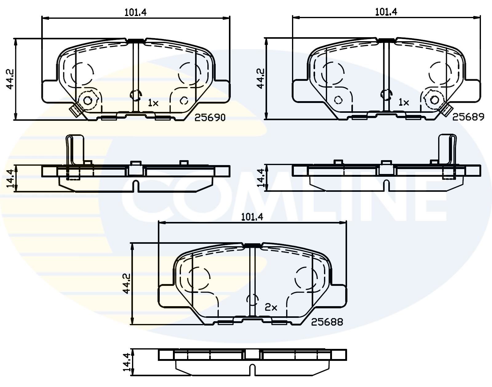 Proizvođač: COMLINE | Kočioni sistem: Akebono | Kočione pločice: sa zakošenom ivicom | Širina [mm]: 44mm | Debljina [mm]: 2mm | WVA-broj: 14 | WVA-broj: 4 | WVA-broj: 25688 | Indikator za upozorenje na habanje: 25689 | Dužina [mm]: 25690mm | Spart line kod: cocbp32238 | GTIN: 5055590844058