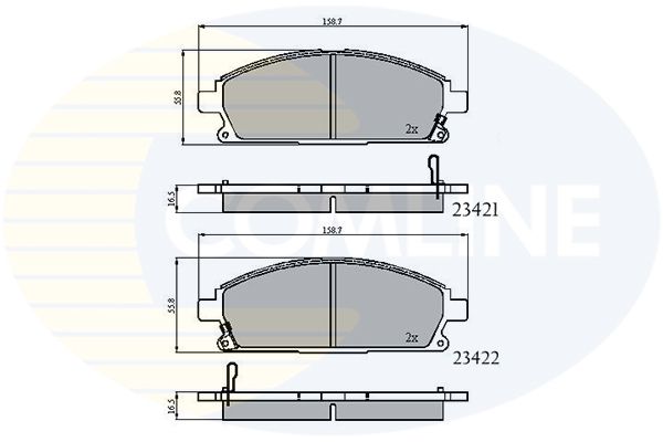Proizvođač: COMLINE | Kočioni sistem: Sumitomo | Kočione pločice: sa zakošenom ivicom | Širina [mm]: 55mm | Debljina [mm]: 8mm | WVA-broj: 16 | WVA-broj: 5 | Indikator za upozorenje na habanje: 23421 | Dužina [mm]: 23422mm | Spart line kod: cocbp3591 | GTIN: 5055339162177