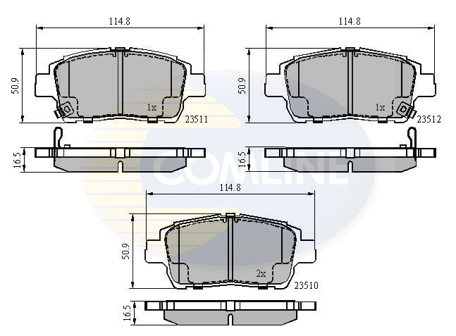 Proizvođač: COMLINE | Kočioni sistem: Akebono | Kočione pločice: sa zakošenom ivicom | Širina [mm]: 50mm | Debljina [mm]: 9mm | WVA-broj: 16 | WVA-broj: 5 | WVA-broj: 23510 | Indikator za upozorenje na habanje: 23511 | Dužina [mm]: 23512mm | Spart line kod: cocbp3901 | GTIN: 5055181552362